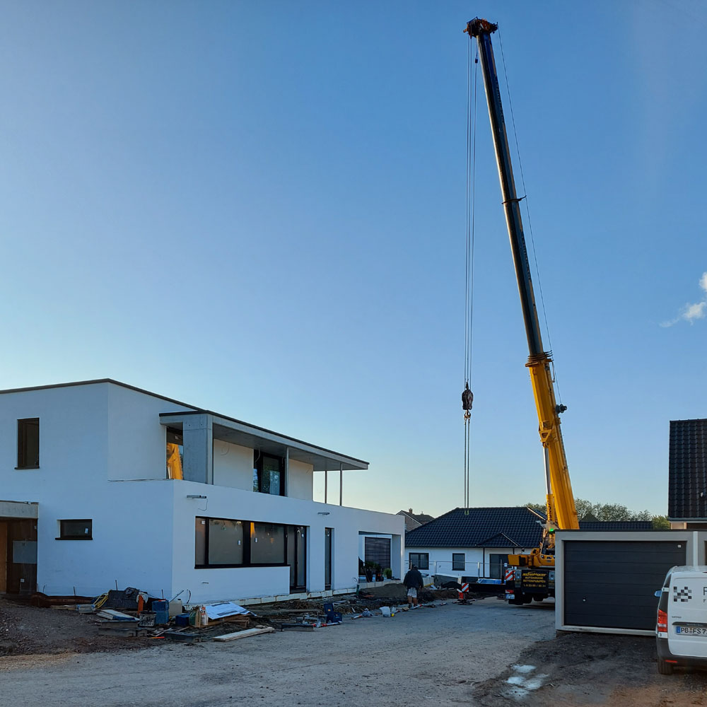 Bergkampstraße in Lünen. Wir bauen hier drei Einfamilienhäuser am Eingang des Baugebiets. Hier das größte der drei Gebäude.