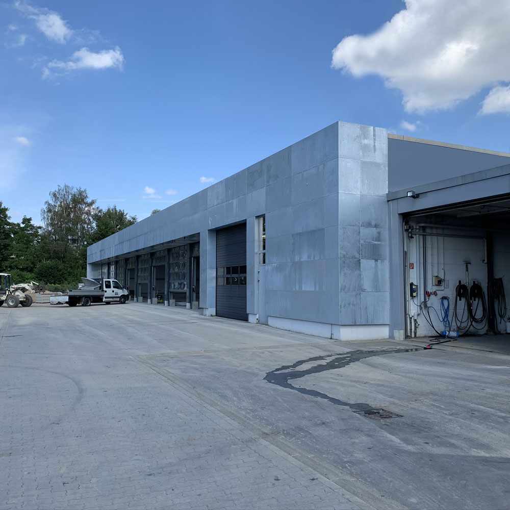 Ersatzneubau Betriebsgebäude, Werkstatt, Fahrzeug- und Waschhalle als Pilotprojekt einer Straßenmeisterei mit geringer CO2 Emission.