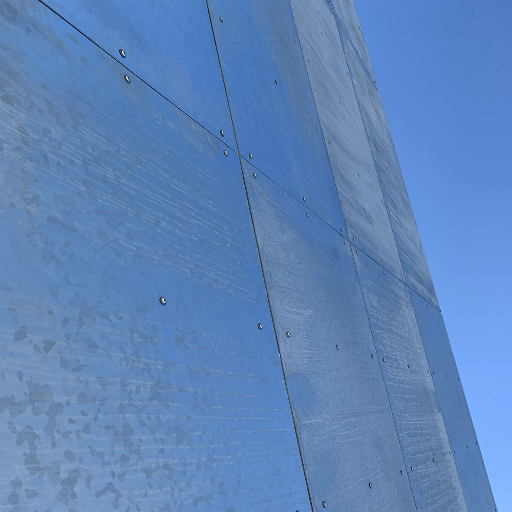 Die feuerverzinkte Fassade ist montiert.