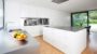 Das Interieur wurde einschließlich der Küche zusammen mit den Bauherren geplant und in einer Kombination aus vorfabrizierten Möbeln mit Ergänzungen vom Tischler umgesetzt.