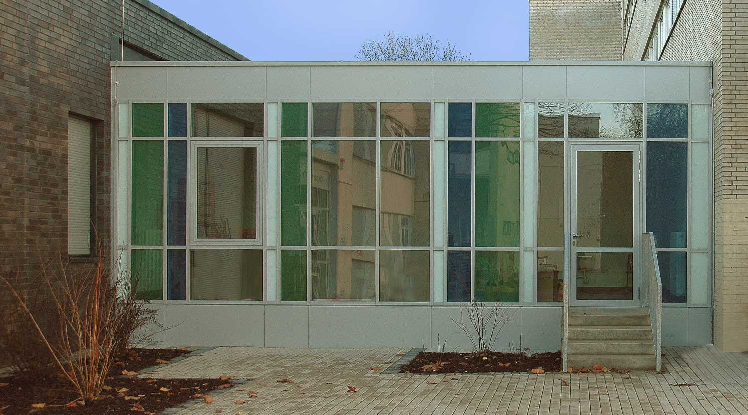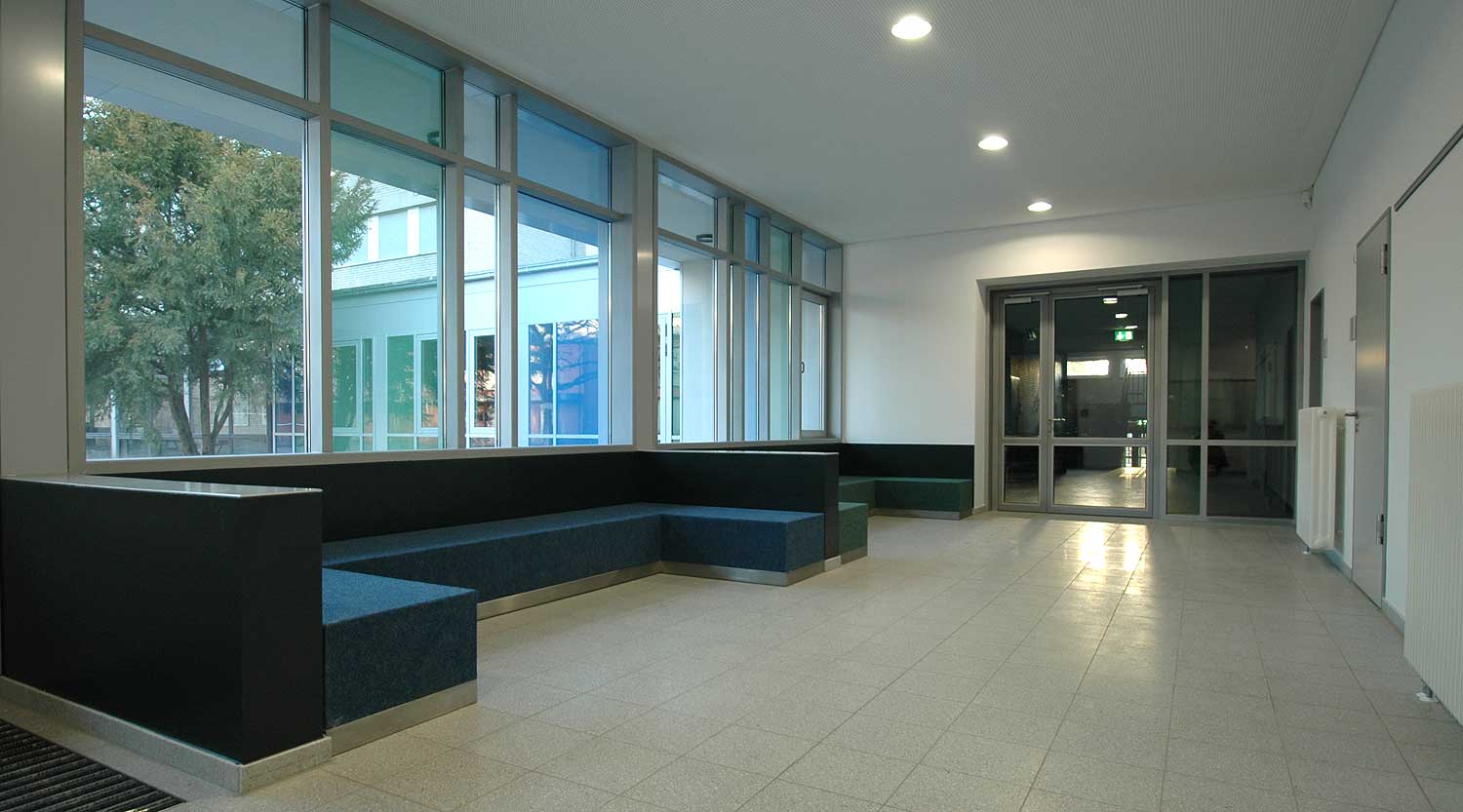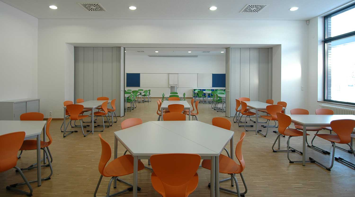 Durch eine umfangreiche Bedarfsanalyse zusammen mit der Schulleitung und die Neuordnung weiterer Funktionen, die bisher wegen des akuten Raummangels über die Schulgebäude verteilt lagen, konnten wir zeigen, wie die vorhandenen Räume effektiver zu nutzen sind, so dass der Neubau deutlich geringer ausfallen konnte, als zunächst angenommen.