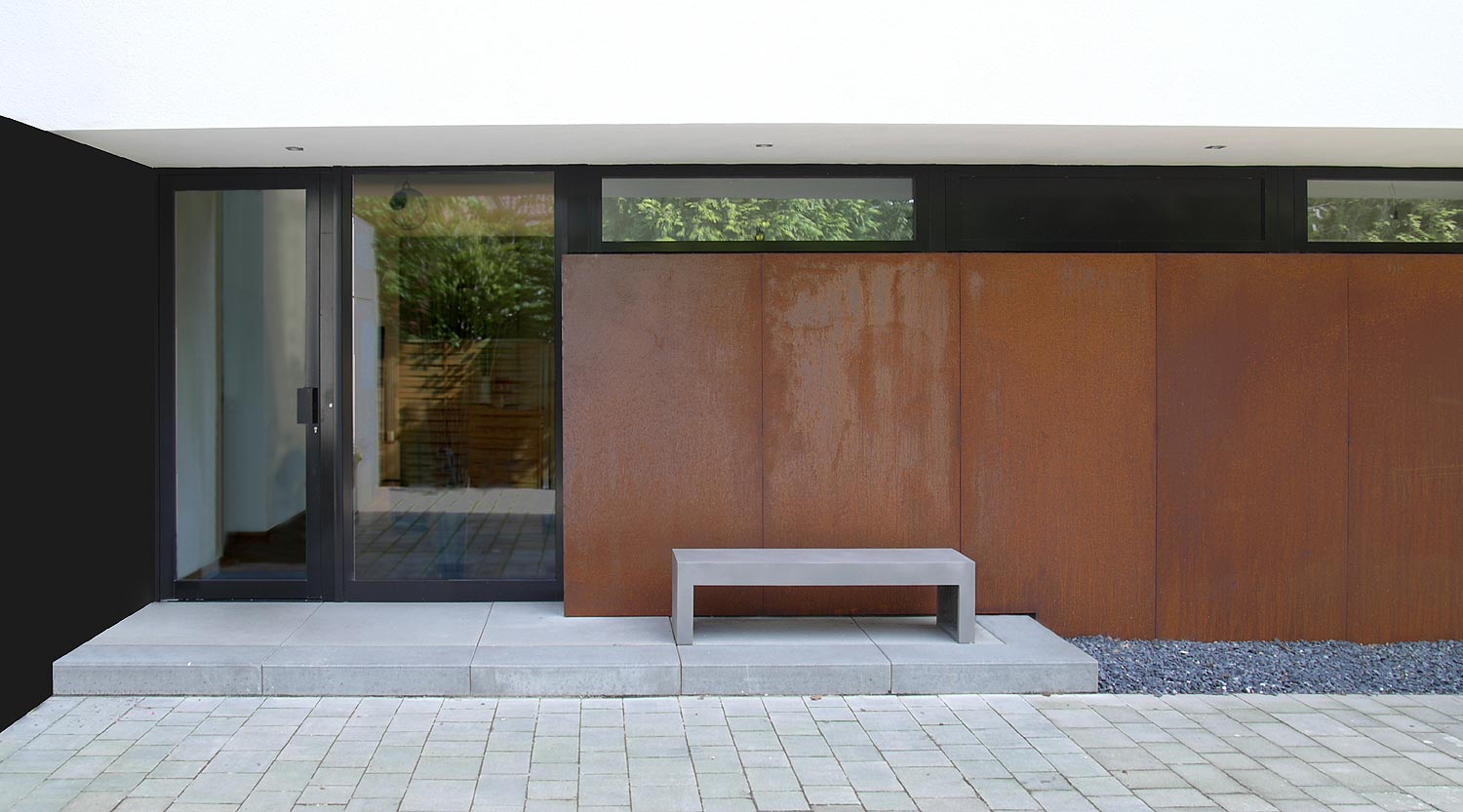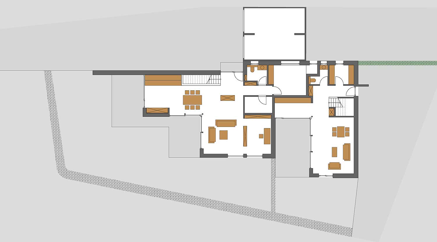 Es galt, neben der Umsetzung von Raumprogramm und funktionalen Ansprüchen auf dem ohnehin komplizierten Grundstück möglichst die noch brauchbaren Bauteile aus dem alten Haus wieder zu verwenden.