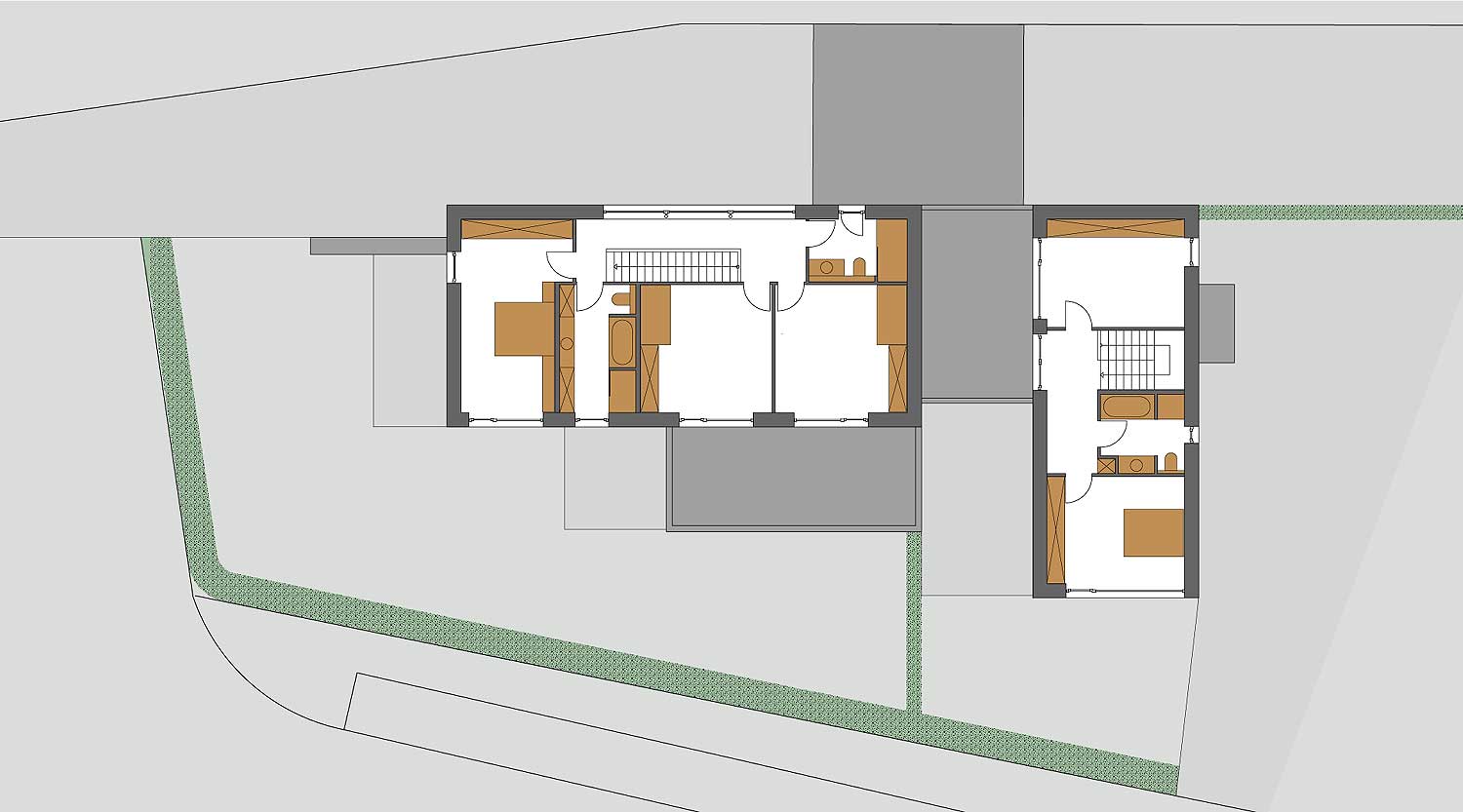 Die Einliegerwohnung wurde größer und bekam wie die Kinderzimmer eine eigene Dachterrasse.